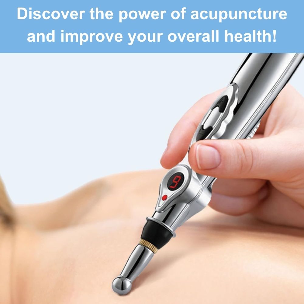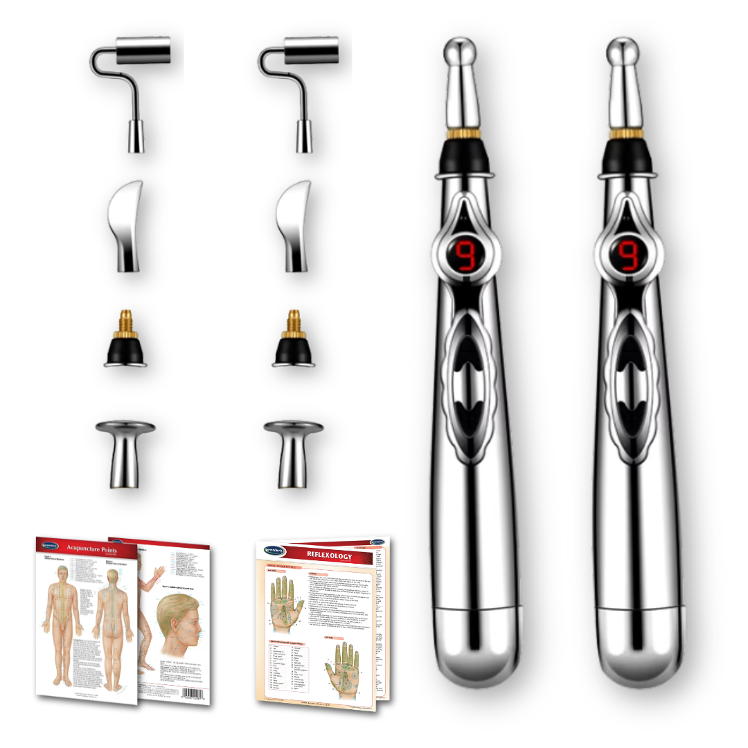 The acupuncture pen uses gentle electric pulses to stimulate reflex points. It promotes 100% natural healing. It effectively relieves conditions such as back pain, arthritis, sciatica, fibromyalgia, migraines, sports injuries, muscle and joint pain, and more.
